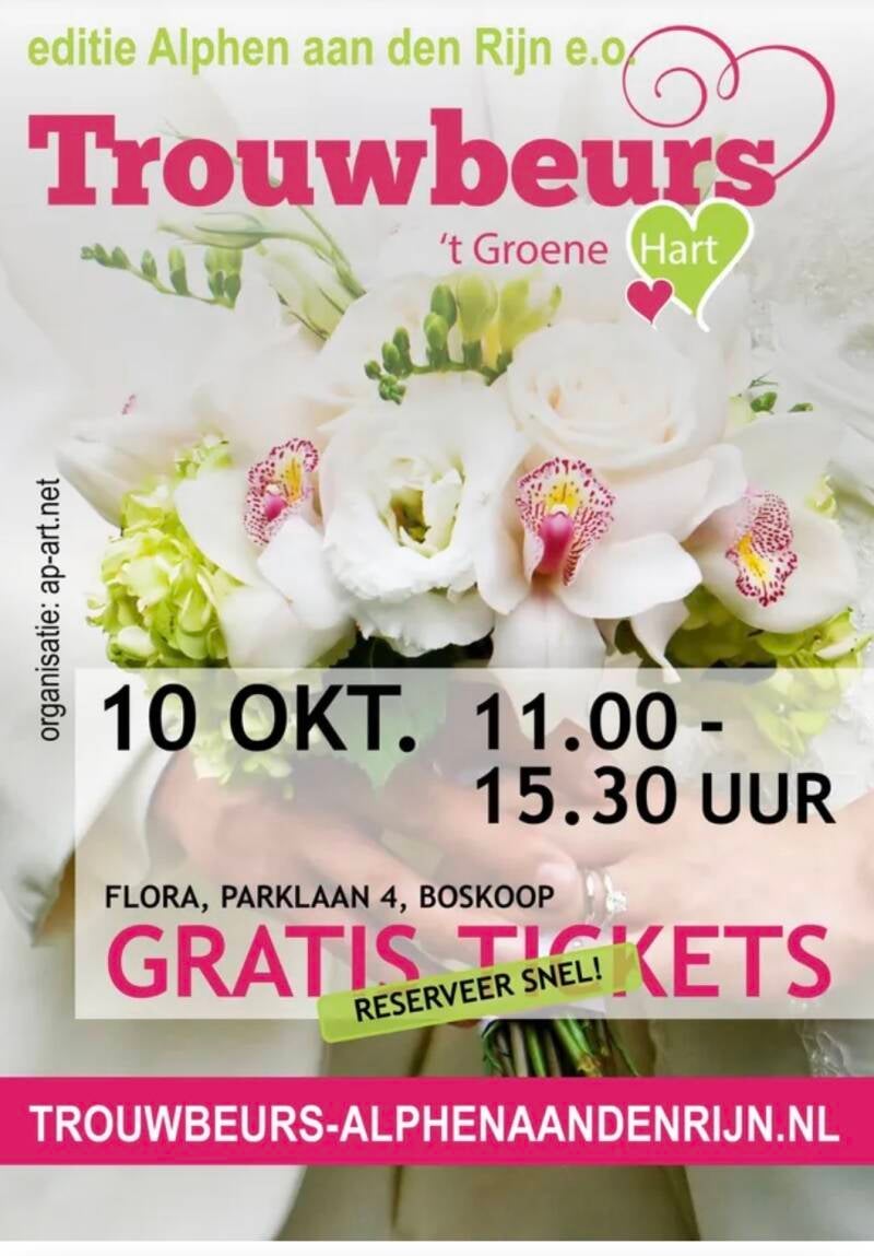 Op 10 oktober 2026 zijn wij aanwezig als leverancier van de photobooth op de trouwbeurs ’t Groene Hart in Alphen aan den Rijn, gehouden bij Flora Boskoop.